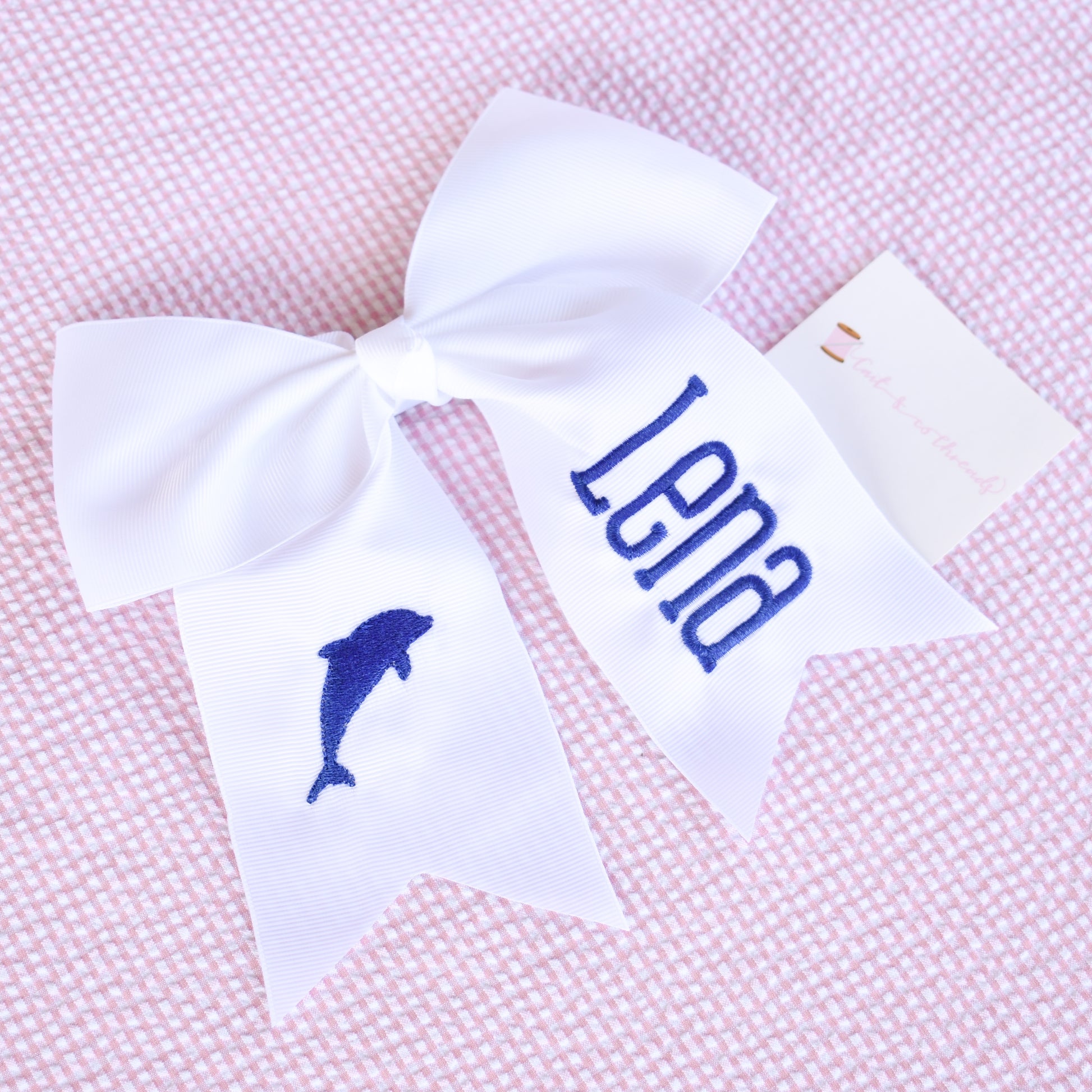 Personalized Dolphin Hair Bow. Approximately 7 inches in width. Alligator clip.